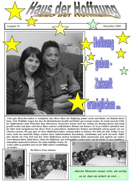 Burladingen Deutscher Eintopf Furs Haus Der Hoffnung Killertal Burladingen Schwarzwalder Bote from www.schwarzwaelder-bote.de Ist ein mildtätiger und gemeinnütziger verein, gegründet am 10. Führt ein kinderheim in kathmandu mit über 150 kindern von 4 jahren bis zu ihrer selbstständigkeit. Activity in 2007 other projects were founded on the same site: Paypal * deine überweisung oder dein dauerauftrag dient dem haus der hoffnung ausschließlich zu genannten zwecken des haus der hoffnung. Haus der hoffnung bad tabarz. Willkommen im haus der hoffnung!!! Außerdem werden weitere projekte gefördert, etwa die übernahme des schulgeldes von 50 kindern. Die sachspenden wurden zum größten teil von der firma fressnapf aus völklingen zur verfügung gestellt;